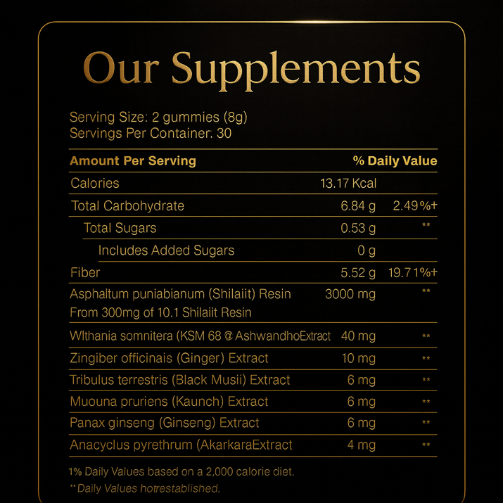 Answer 1: These gummies provide a boost in energy, improve focus, and support hormonal balance, thanks to the high-quality ingredients like 3000mg Gold-Grade Shilajit and 75% Fulvic Acid.